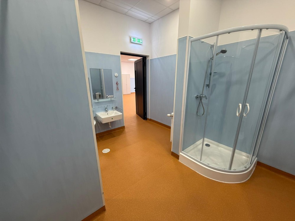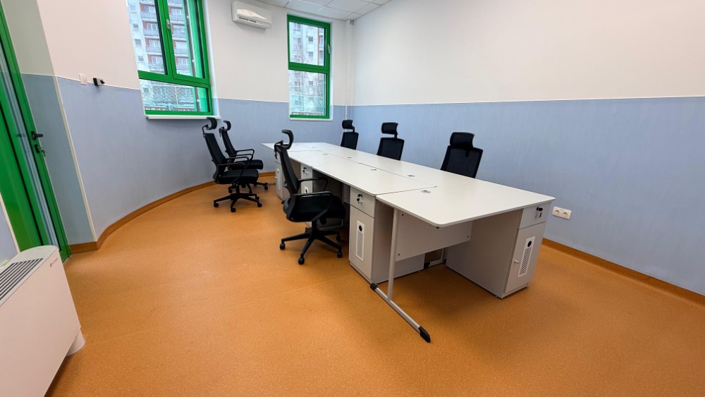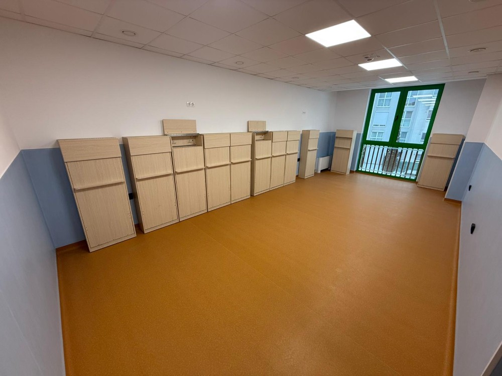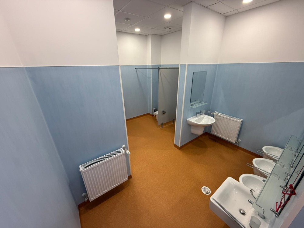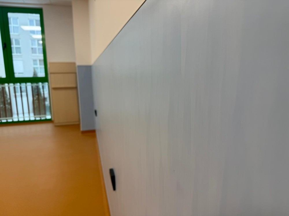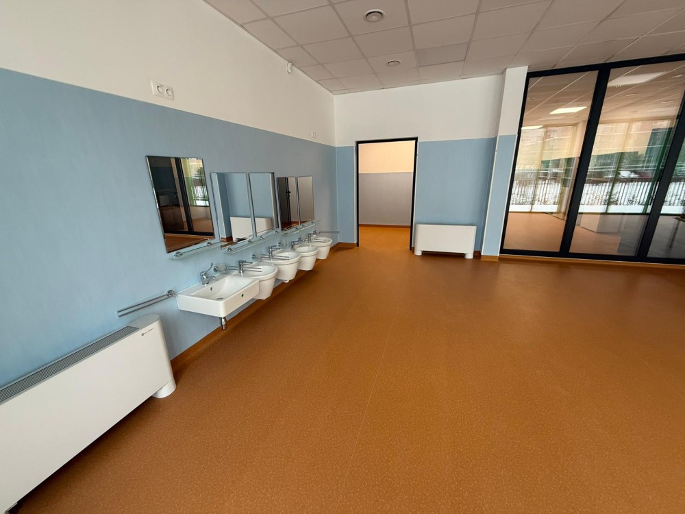 Pentru pardoseli am montat covor PVC Tarkett model Spark A08 pe o suprafață de 1500 mp, un material eterogen de 2 mm grosime, rezistent la uzură și ușor de curățat, ideal pentru spații educaționale. Pentru protecția și igienizarea pereților am aplicat tapet PVC Tarkett model Wallgard Strong Pastel pe o suprafață de 1560 mp, un sistem antibacterian, impermeabil și foarte durabil, potrivit pentru zone în care curățenia și siguranța sunt esențiale.